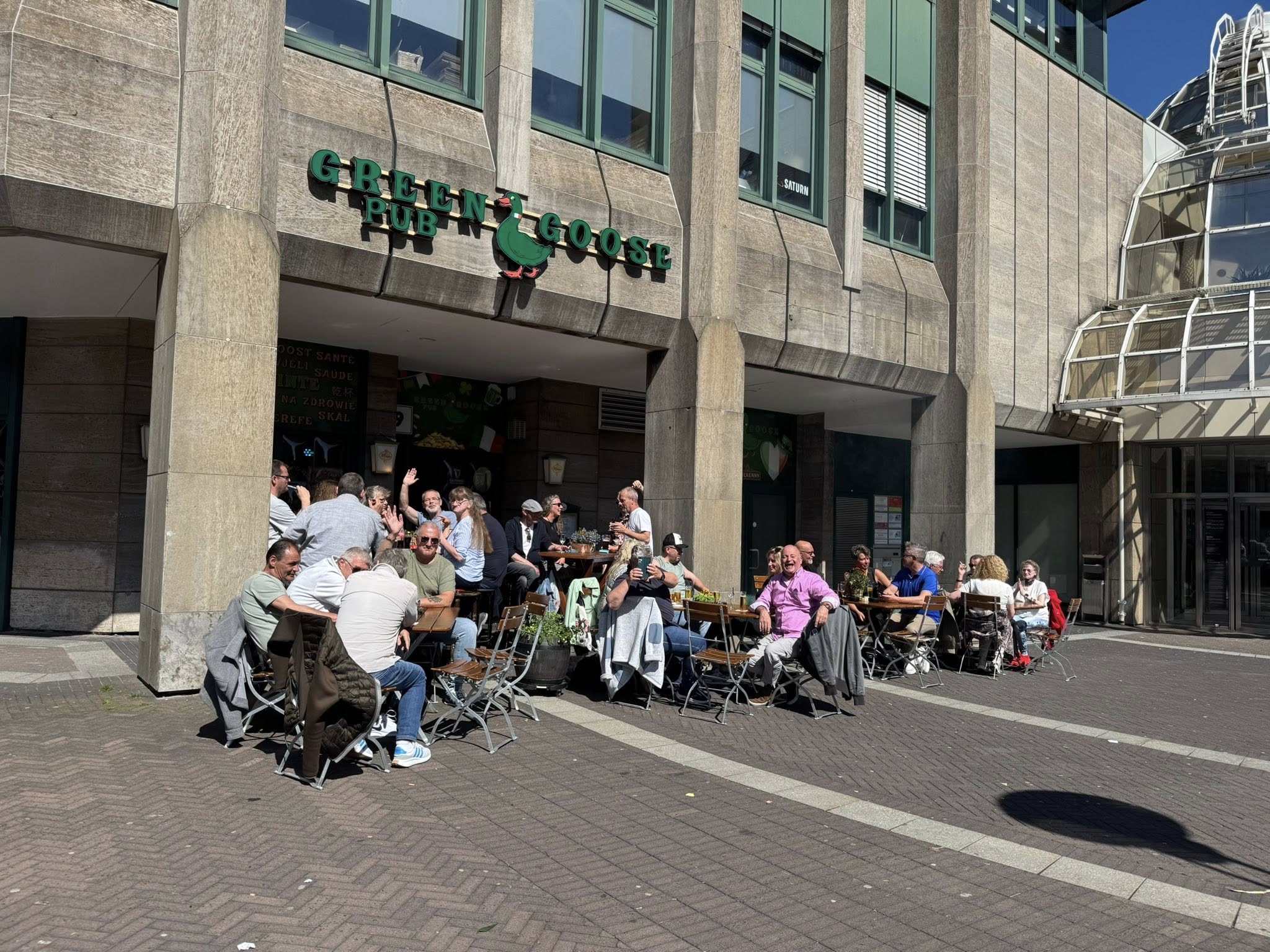 Bei einem kühlen Guinness, einem frisch gezapften Bitburger, einem spritzigen Aperol oder einfach einer eisgekühlten Cola lässt es sich wunderbar entspannen. Die Außengastronomie des Green Goose Pub lädt mit gemütlicher Atmosphäre und freundlichem Service zum Verweilen ein – mitten im Herzen der Stadt.