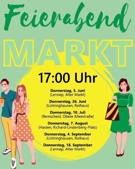 Nach dem erfolgreichen Auftakt im letzten Sommer kehren die Feierabendmärkte 2025 zurück nach Remscheid – und diesmal wird’s noch größer!